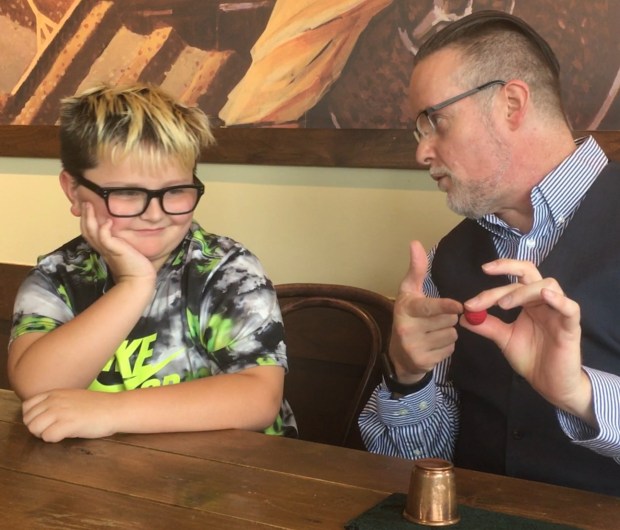 I met a fun couple a few weeks back. Unfortunately, they’re moving out of the area. Their son was interested in learning to do some magic tricks. So I got to do one of my favorite things. I love putting magic books in kids’ hands. For years I’ve made it a point to pick up beginning magic books cheap at half-price books stores and garage sales and then find them new homes. Magic is great for things like reading and following directions.I made arrangements for them to meet me at a coffee shop yesterday, and I gave him a magic book to keep. Then, to make the whole thing very special, I did some magic for him and he was absolutely amazed.